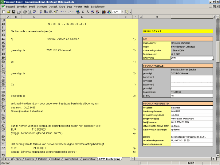 ondersteund volledig de RAW systematiek. Bestekken en inschrijfstaten